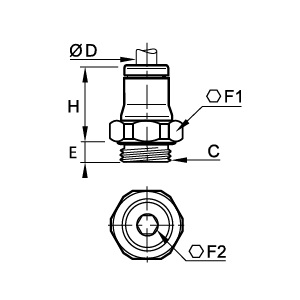 Priama prípojka 3601, Vonkajší BSPP a Metrický závit. 10 mm, G 1/4. Materiál: FDA chemická poniklovaná mosadz, FKM.
