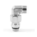 90° uhlová spojka nastaviteľná EW-R-ED – 10 mm - BSPP závit G 1/4 A. Pripojenie EO 24° / EO 24° DKO. Ľahký (L) rad, Pozinkovaná oceľ, S maticou a zárezným krúžkom. Tesnenie NBR + Elastomerové tesnenie.